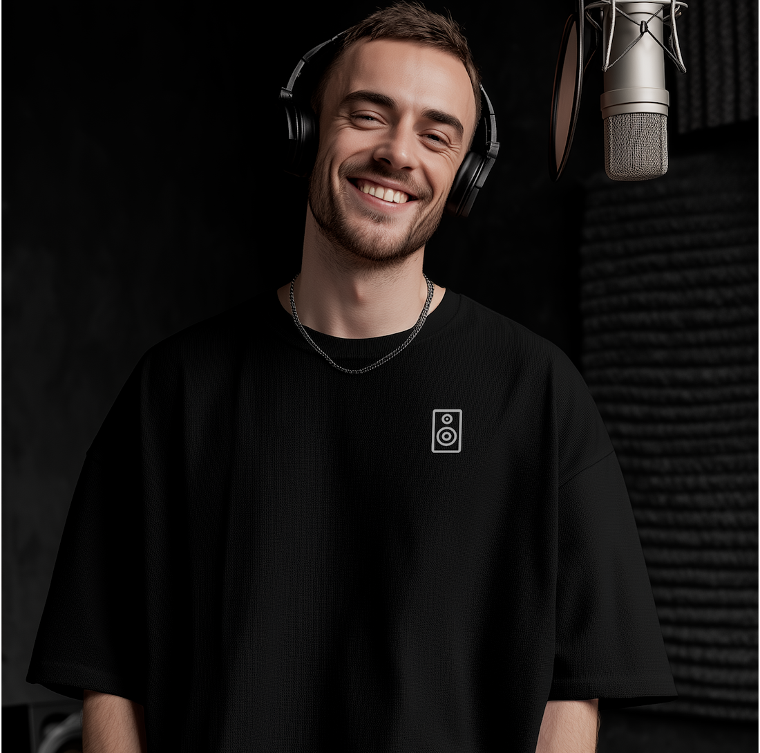 Be the first to review “BlackLineShirt Minimal Speaker Graphic Logo Black T-Shirt”